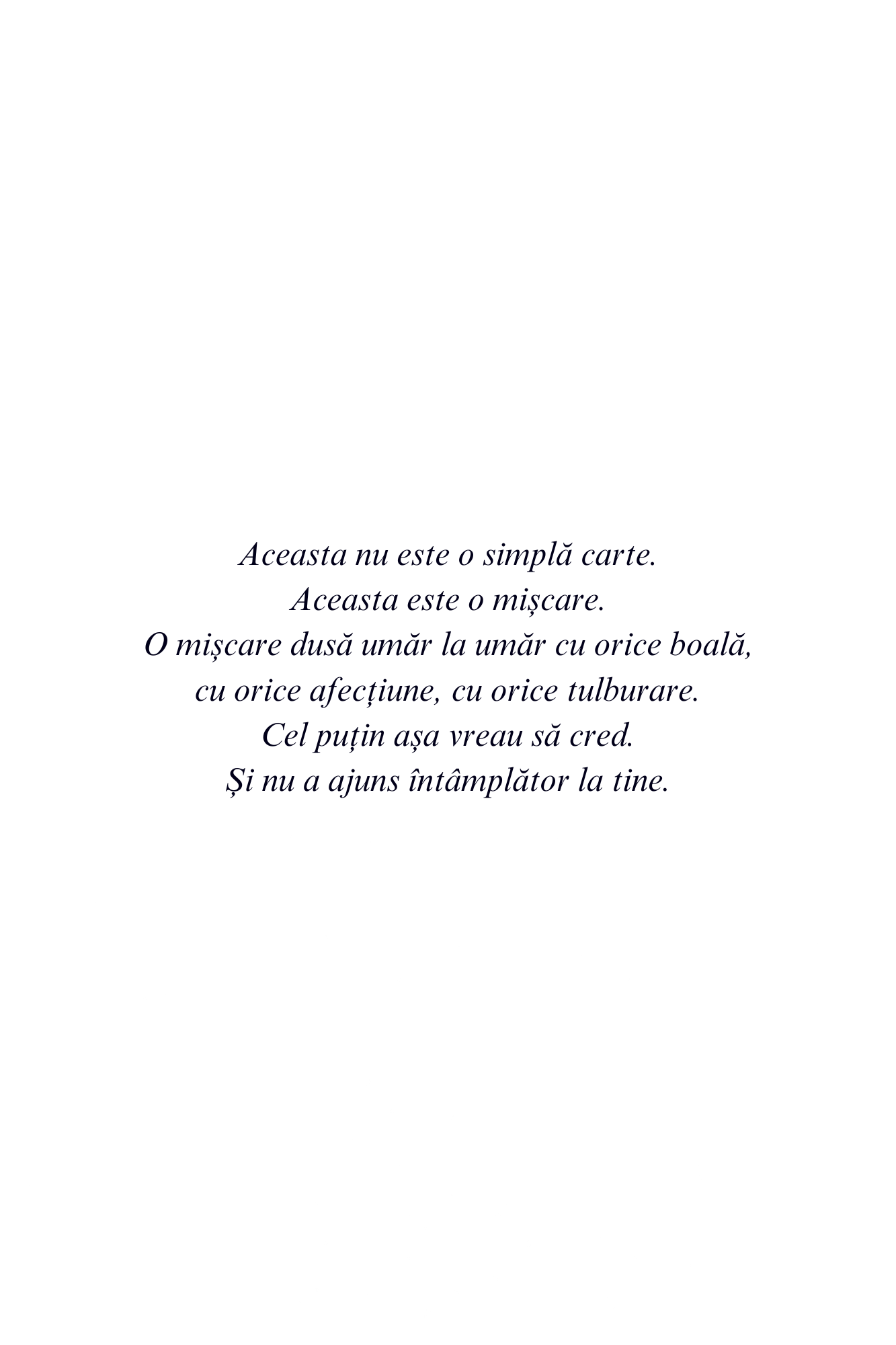 ”Voiam sa va spun ca ceva extraordinar s-a intamplat. Imediat dupa ce am citit cartea dumneavoastra in decembrie si mi-am schimbat vibratia, am simtit rugaciunea mai profund, am intalnit o dr homopata care ne-a ajutat enorm cu fetita. Ea este mult mai bine fata de cum era inainte, mai avem de recuperat, dar facem in ritmul ei. Ce voiam sa spun, este un mare :"MULTUMESC". Mi-ati schimbat viata, traiectoria si suferinta. Am trecut prin multe etape de constientizare, urmez si eu tratament homeopat, iar de curand am hotarat ca sunt dispusa sa imi schimb meseria, sa devin homeopat pediatru. Sunt atatia copii si mame care au suferit ca noi 2 si eu trebuie sa fac ceva sa ii ajut. Nu aveti idee cat m-a ajutat cartea dumneavoastra, exact cum mi-a spus doamna doctor, am schimbat vibratia si am inceput sa intalnesc persoane care au fost implicate in vindecarea atat a ei cat si a mea.”