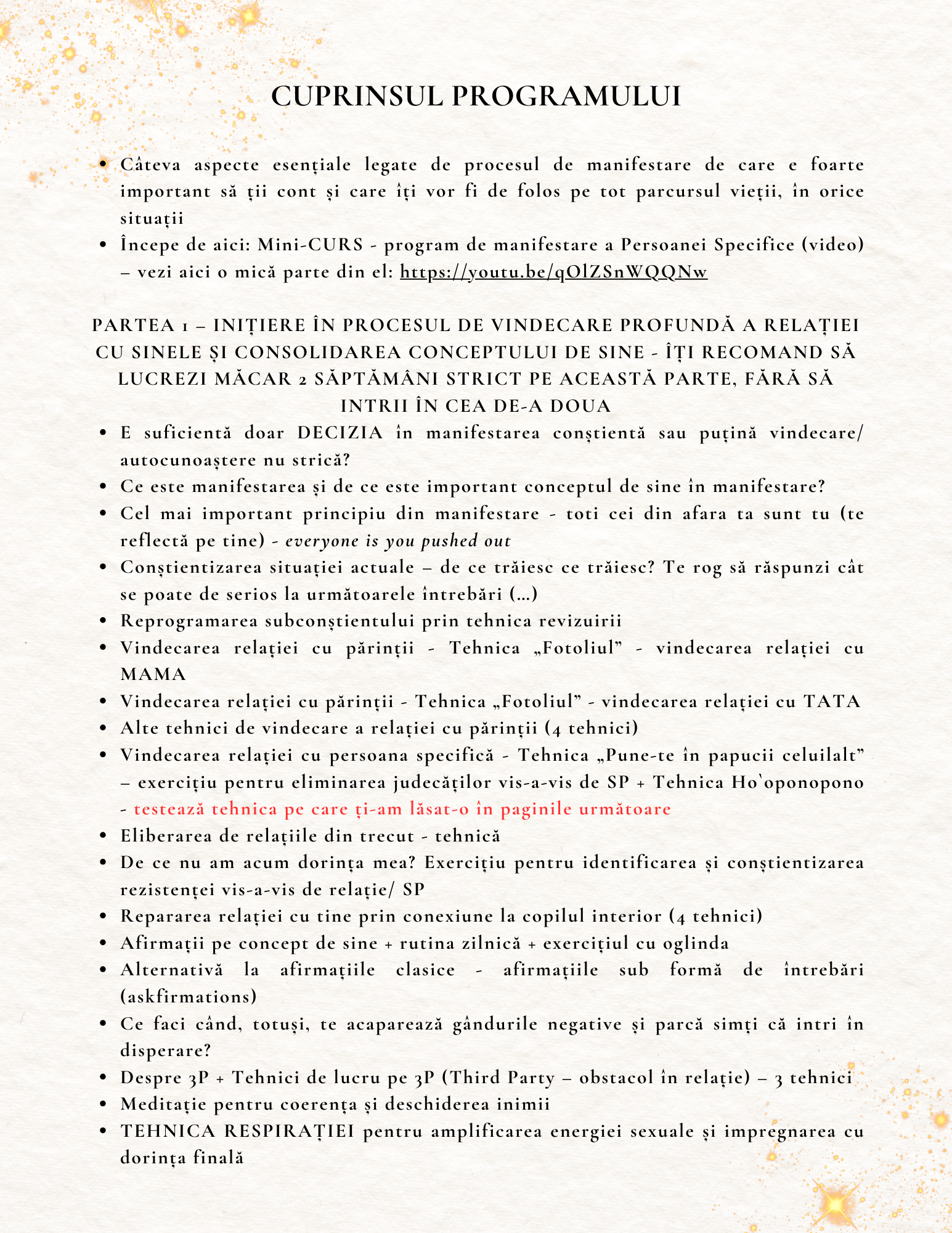 Tocmai de aceea am construit acest program pentru TINE, pentru că știu cât de importantă este o relație pentru un om, cât de important este să ai pe cineva alături, care să te iubească, să te înțeleagă, să te susțină, să fie acolo pentru tine necondiționat. Cât de important este să existe încredere reciprocă, siguranță și liniște într-o relație.