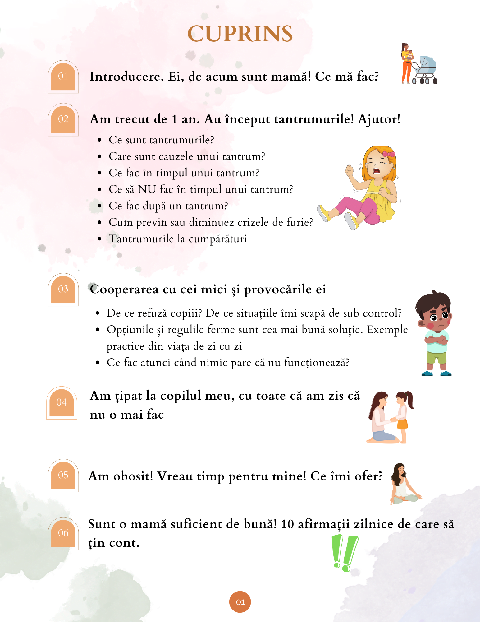 - înțelegi mai bine tantrumurile (cauze, modalități de gestionare) și îți oferă soluții practice pentru a le depăși împreună cu cel mic;