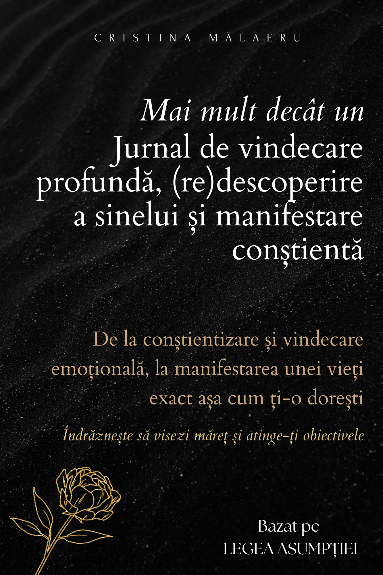 Jurnalul de vindecare emoțională și manifestare conștientă cuprinde aproximativ 170 de pagini cu informație valoroasă, dar și cu multe întrebări puternice, care te vor ajuta să înțelegi manifestarea conștientă, care te vor ajuta să schimbi convingerile toxice în unele sănătoase și să aduci în viața ta orice îți dorești, pentru că pur și simplu ești NELIMITAT.